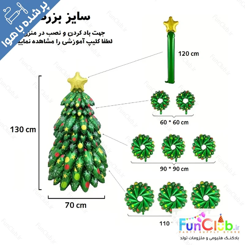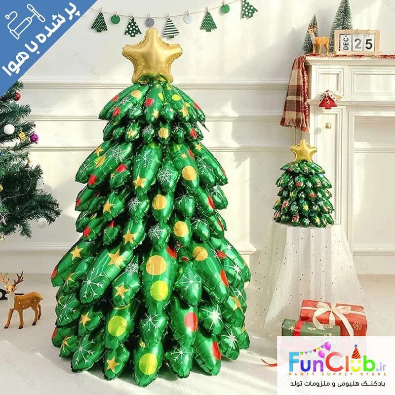 جشنهای خود را با بادکنک استندی AirLoonz طرح درخت کاج ۳ بعدی ۸ طبقه تحول بخشید! این بادکنک پر شده با هوا، بهصورت استوار و چشمنواز، محفل شما را به فضایی جذاب و خاص تبدیل میکند. مناسب برای جشنهای تولد، کریسمس و مناسبتهای ویژه. همین حالا این تم منحصربهفرد را به جمع خود اضافه کنید و استایل خود را برجسته کنید!این محصول به صورت پر شده با هوا تحویل میگردد و دارای پایه زمینی میباشد . (غیر هلیومی)