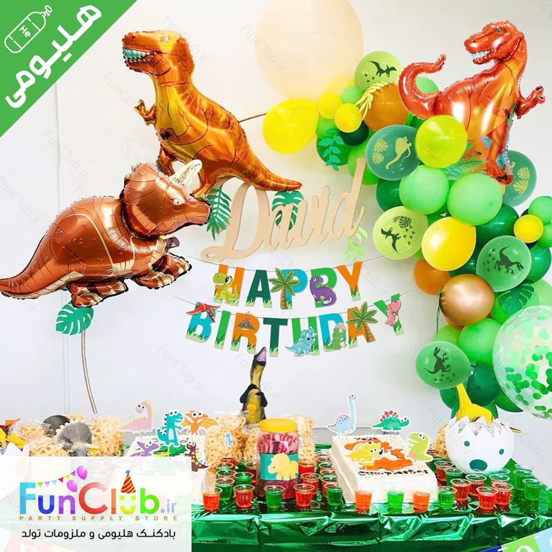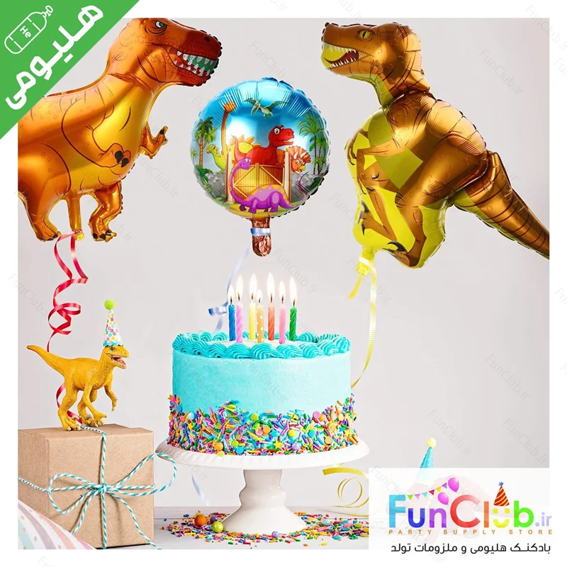 بادکنک فویلی طرح دایناسور تیرانا قهوه ای روشن