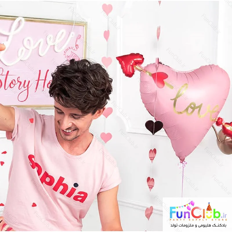 بادکنک فویلی بدون باد سایز متوسط طرح قلب تیر خورده - این محصول ویژه پر شدن با هوا یا هلیوم در منزل توسط خریدار محترم میباشد.