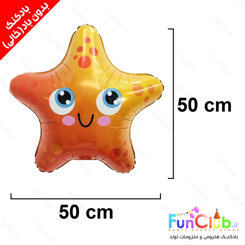 بادکنک فویلی بدون باد سایز متوسط طرح ستاره دریایی نارنجی خوشحال - این محصول ویژه پر شدن با هوا در منزل توسط خریدار محترم میباشد.