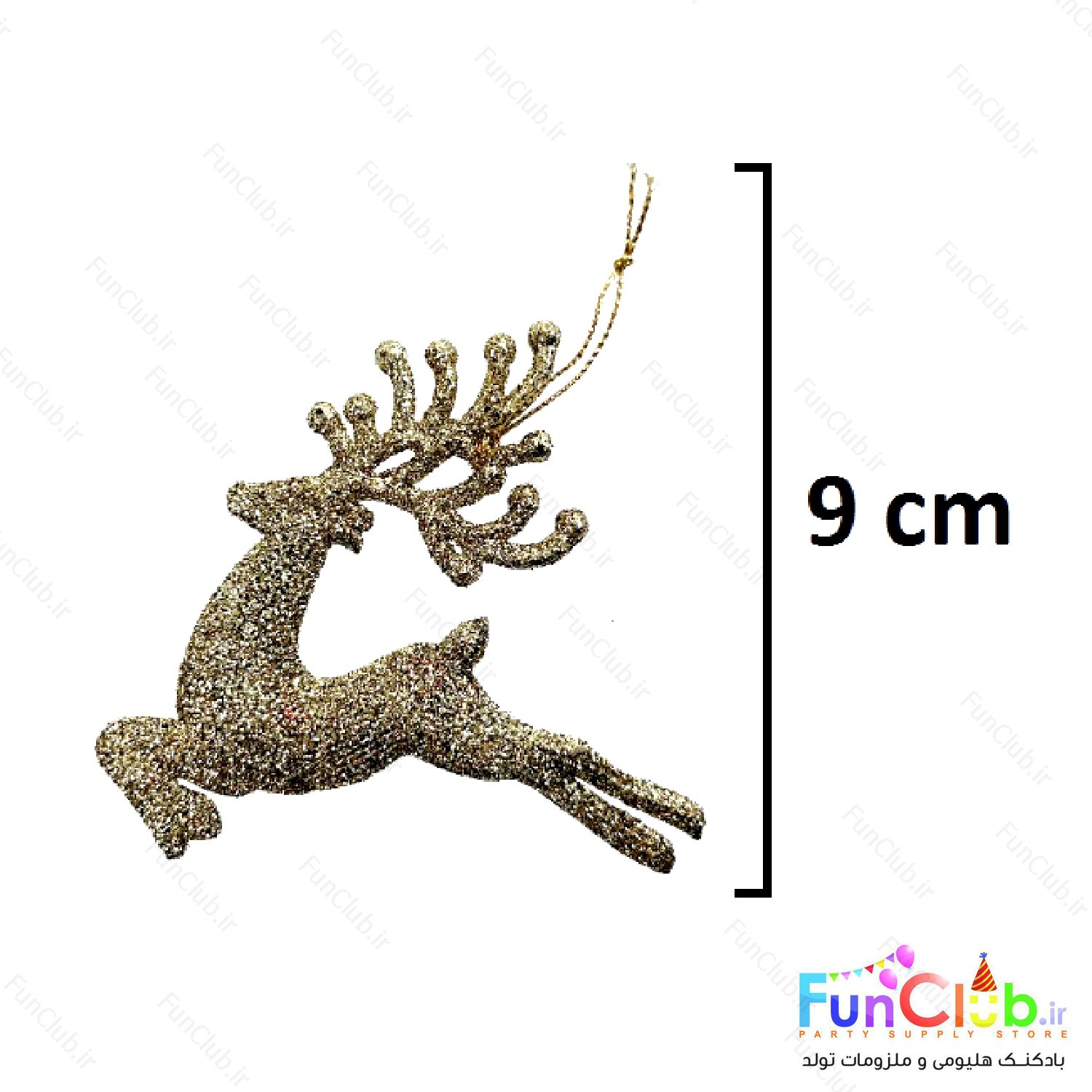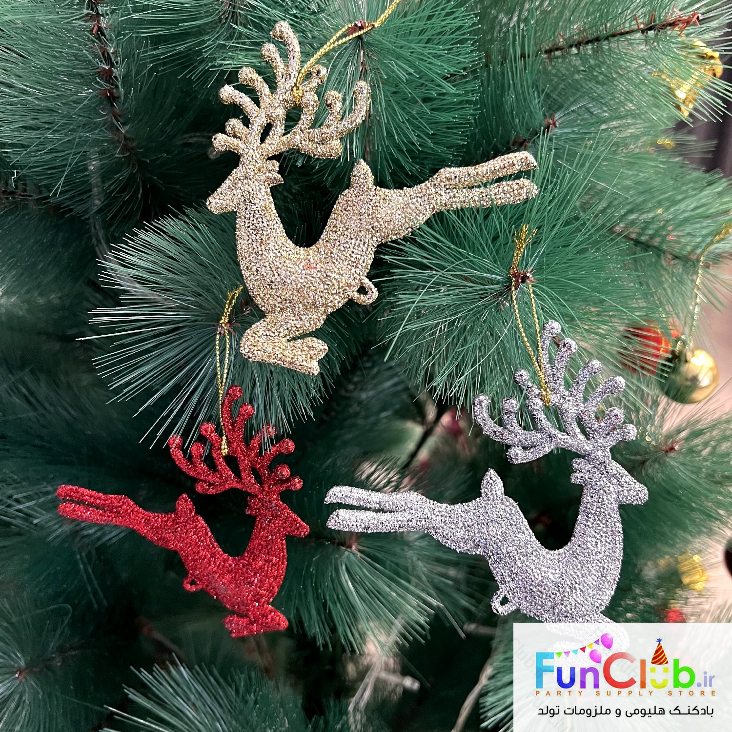 آویز کریسمس طرح گوزن اکلیلی بسته 3 عددی طلایی قرمز نقره ای - 9 سانتی