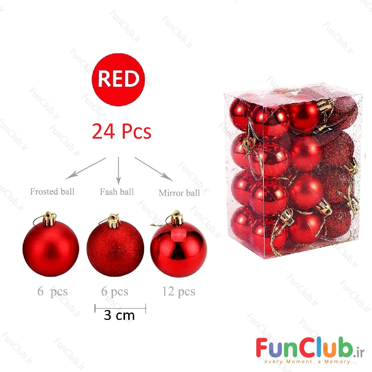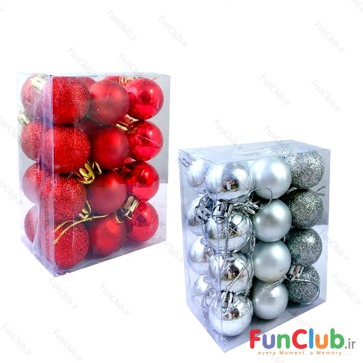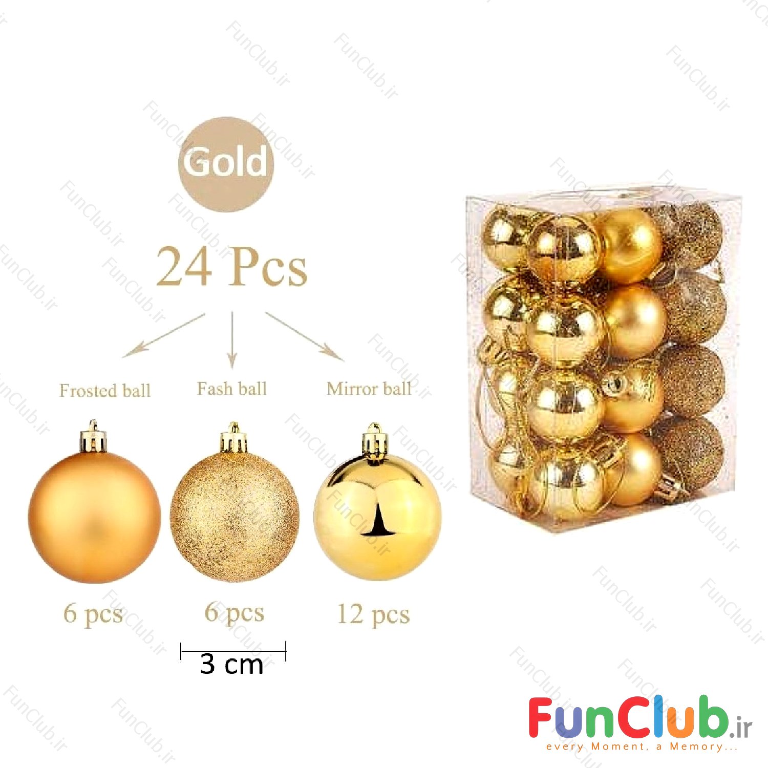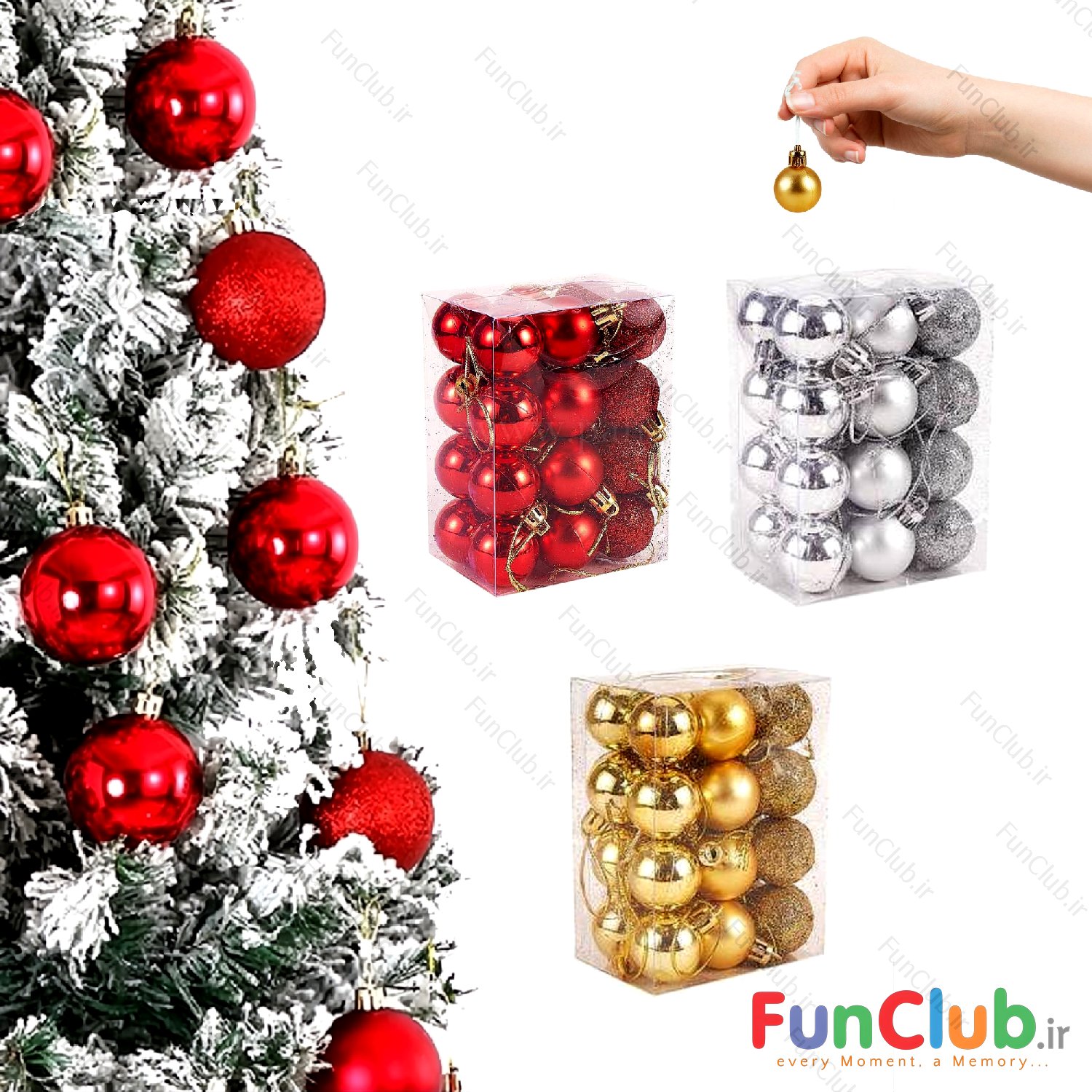با آویز گوی اکلیلی-کروم و متالیک، زیبایی و درخشش را به دکوراسیون خود بیاورید! این مجموعه 24 عددی با قطر 3 سانتیمتر در رنگهای طلایی، نقرهای و قرمز طراحی شده است تا جشنتان را خاص و خیرهکننده کند. فرصت را از دست ندهید و جذابیت بیشتری به فضای خود ببخشید!