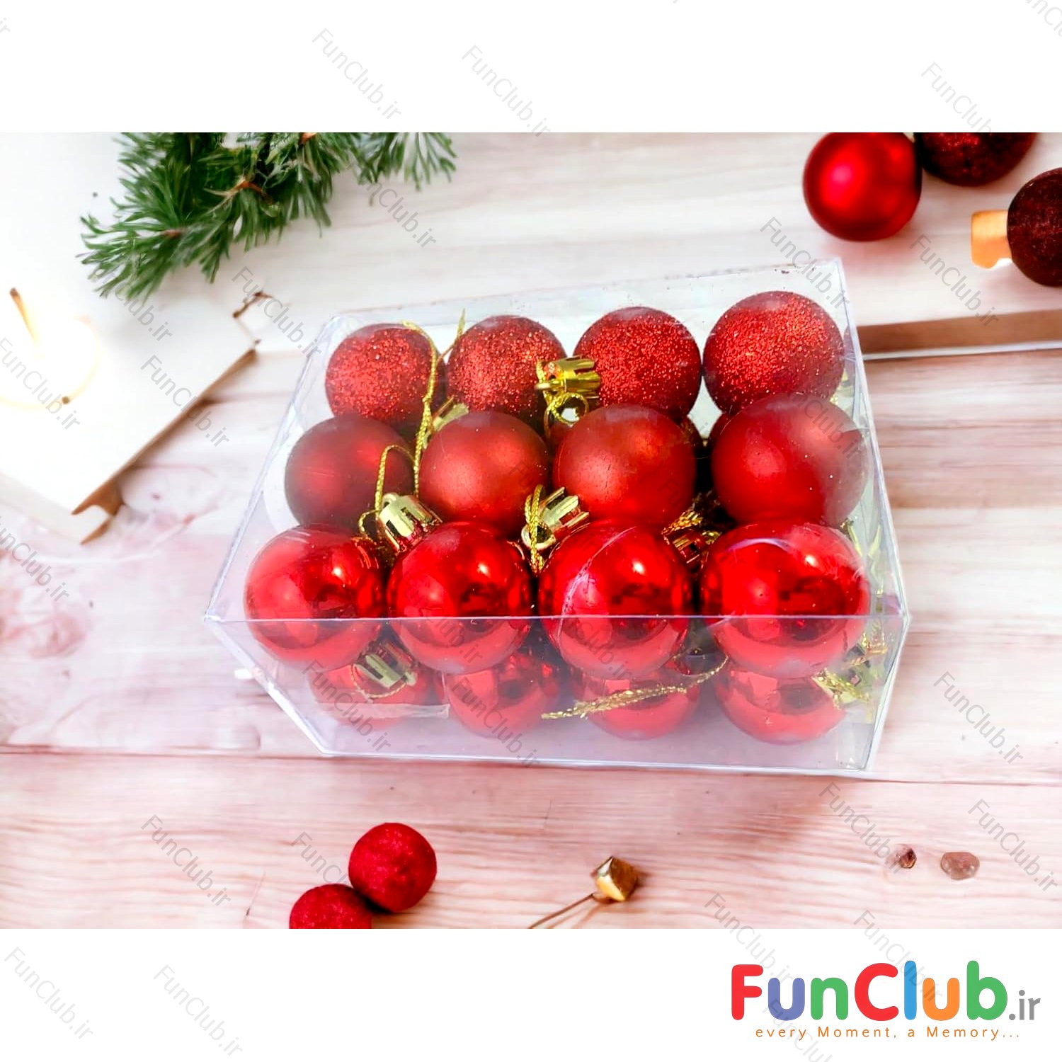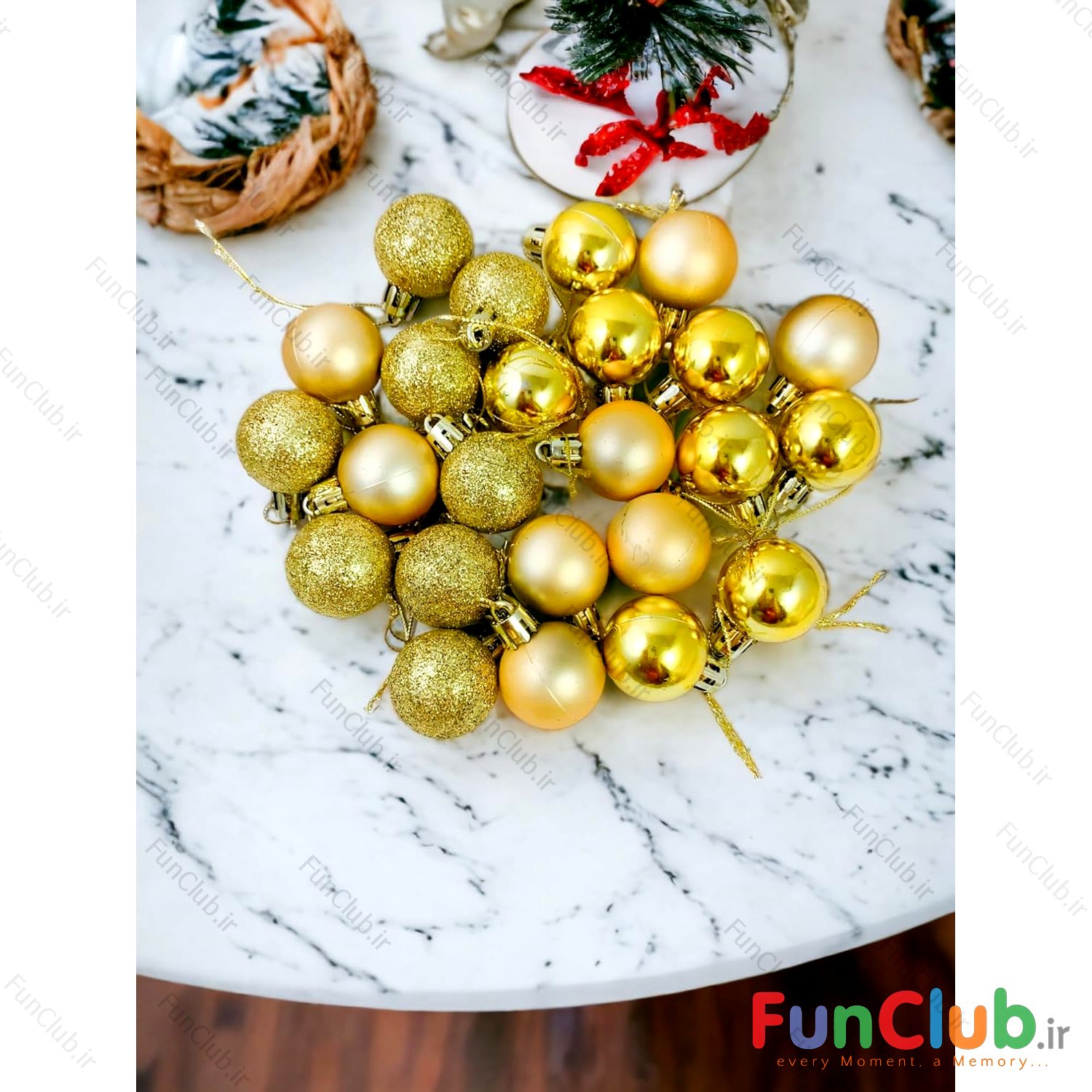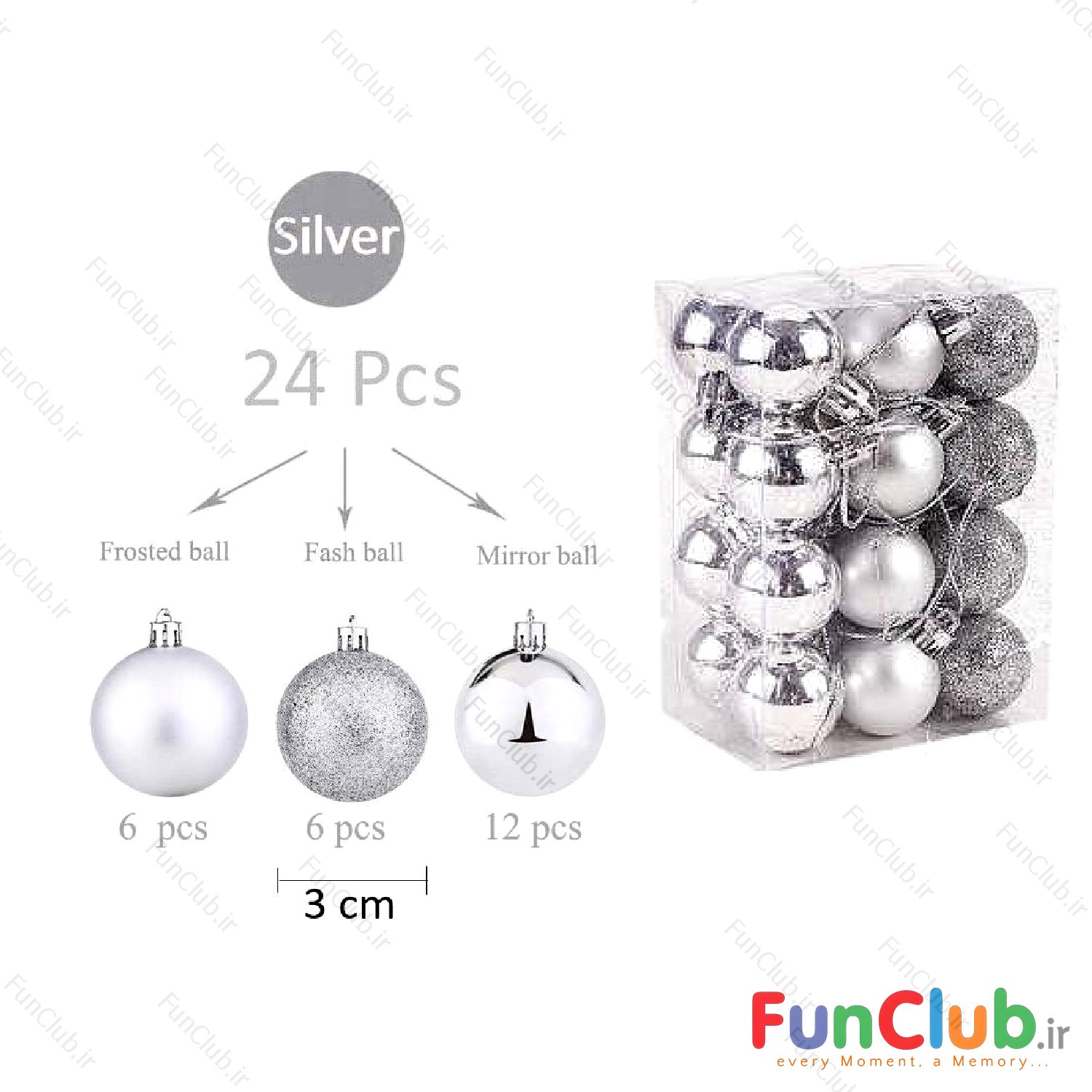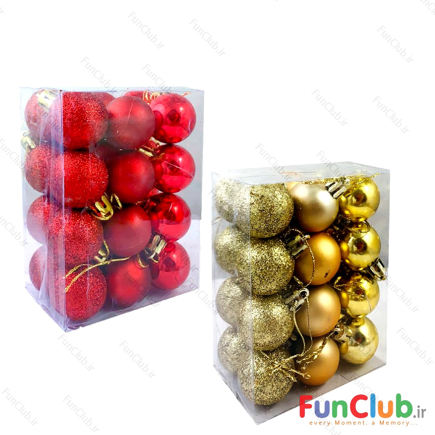 با آویز گوی اکلیلی-کروم و متالیک، زیبایی و درخشش را به دکوراسیون خود بیاورید! این مجموعه 24 عددی با قطر 3 سانتیمتر در رنگهای طلایی، نقرهای و قرمز طراحی شده است تا جشنتان را خاص و خیرهکننده کند. فرصت را از دست ندهید و جذابیت بیشتری به فضای خود ببخشید!