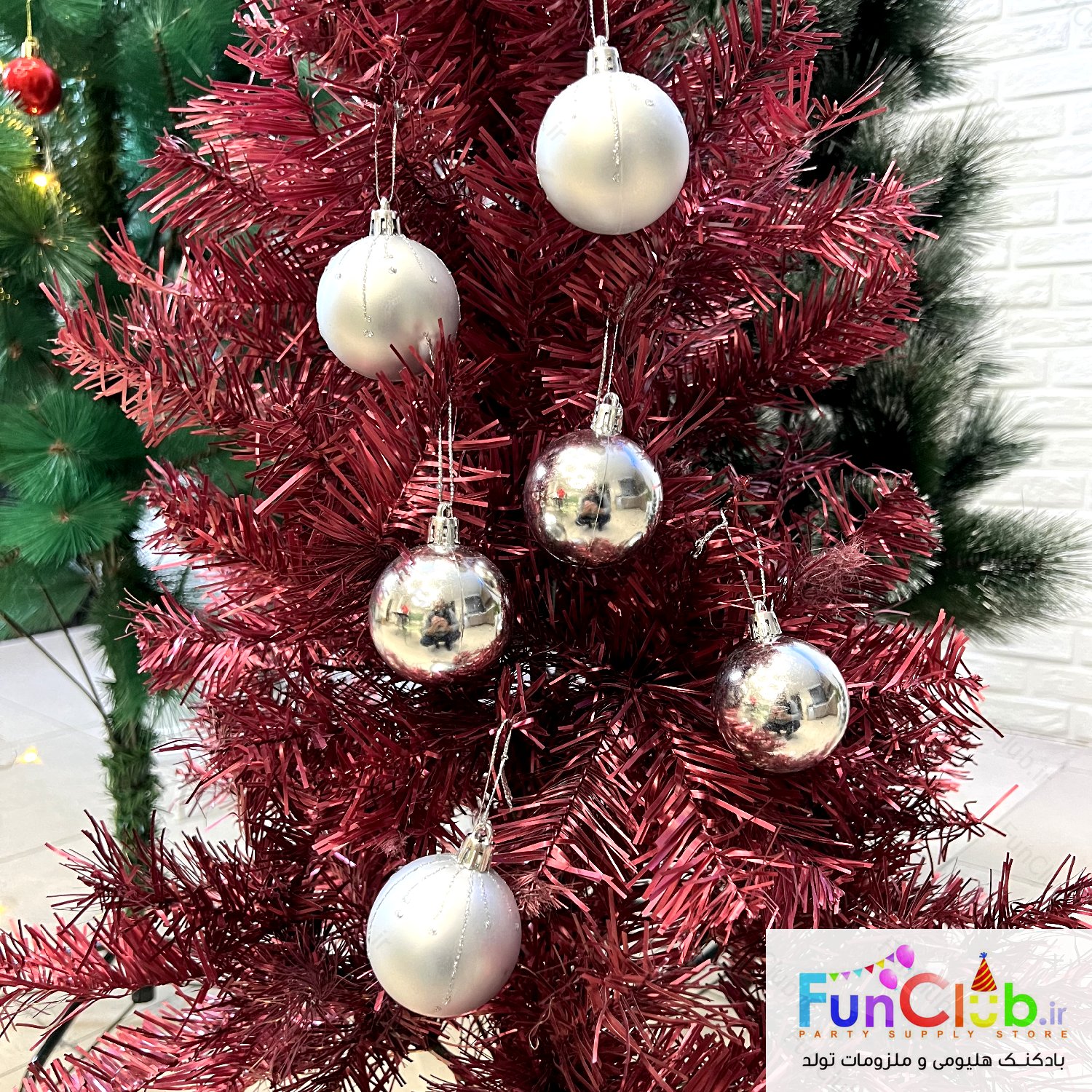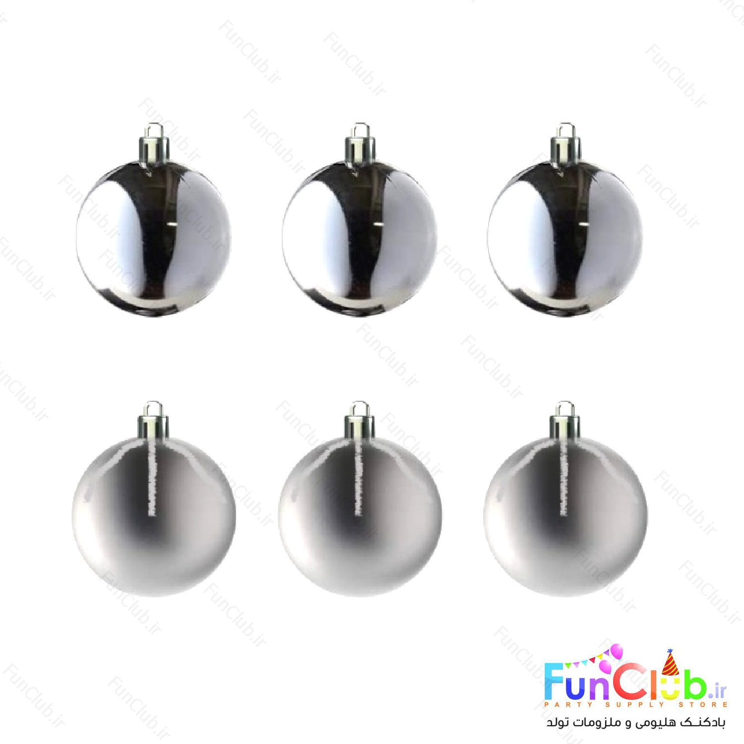 تزیینات کریسمس - آویز گوی نقره ای میکس متالیک و کروم بسته 6 عددی