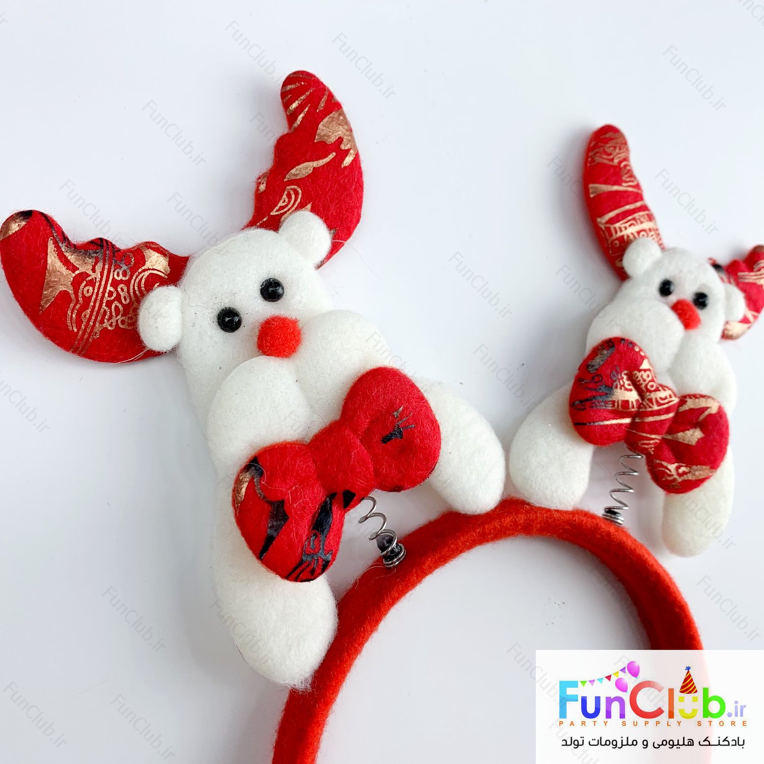 پوشیدنی کریسمس - تل گوزن سفید و قرمز فنری - فری سایز مناسب 2 سال به بالا