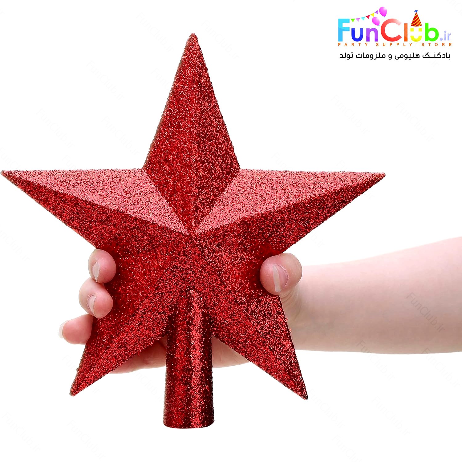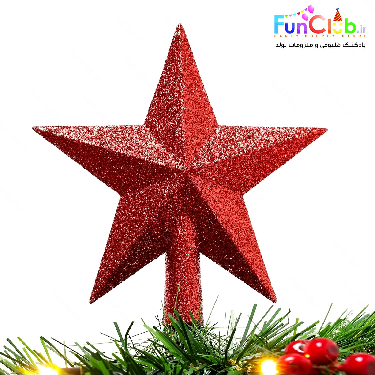 تزیین کریسمس ستاره سردرختی زرشکی اکلیلی - 25 سانتی و 15 سانتی