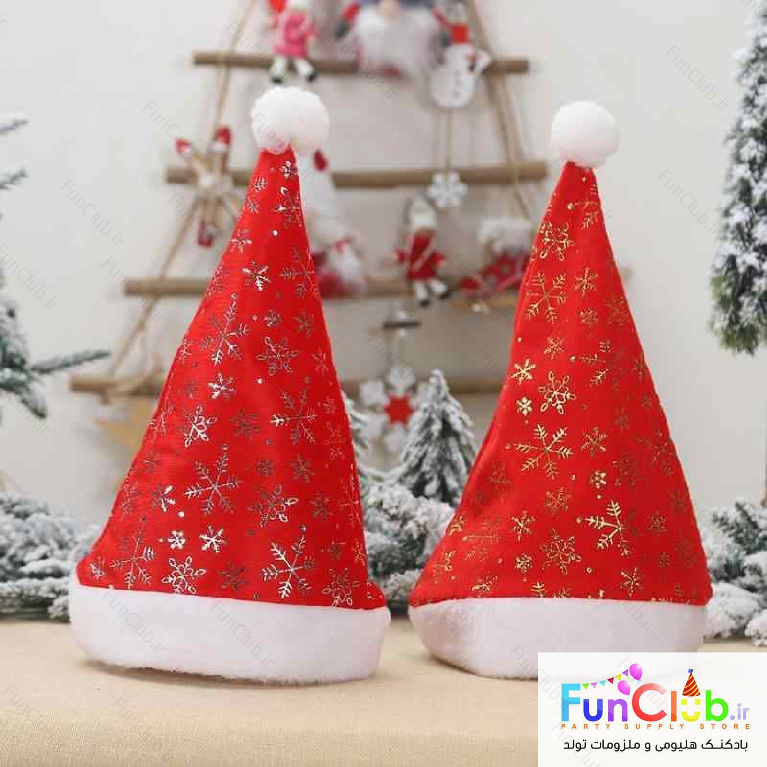پوشدنی های کریسمس - کلاه بابانوئل مخملی طرح دانه برف 30 سانت
