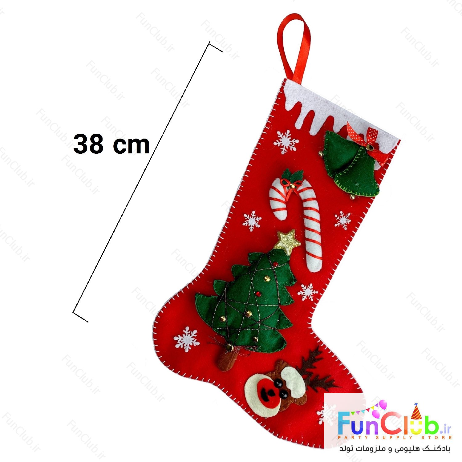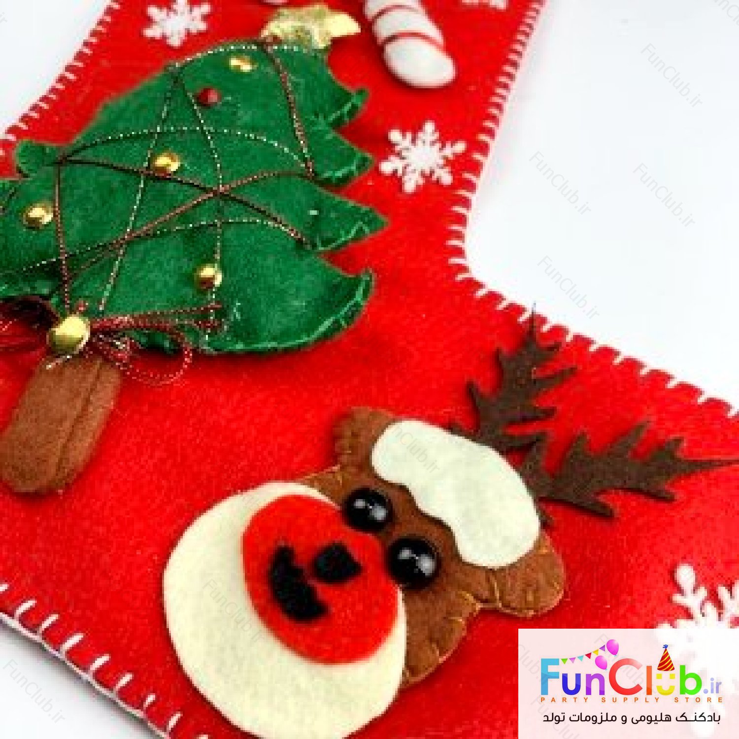 تزیینات کریسمس - جوراب بزرگ قرمز کاج و گوزن دار نمدی دست ساز
