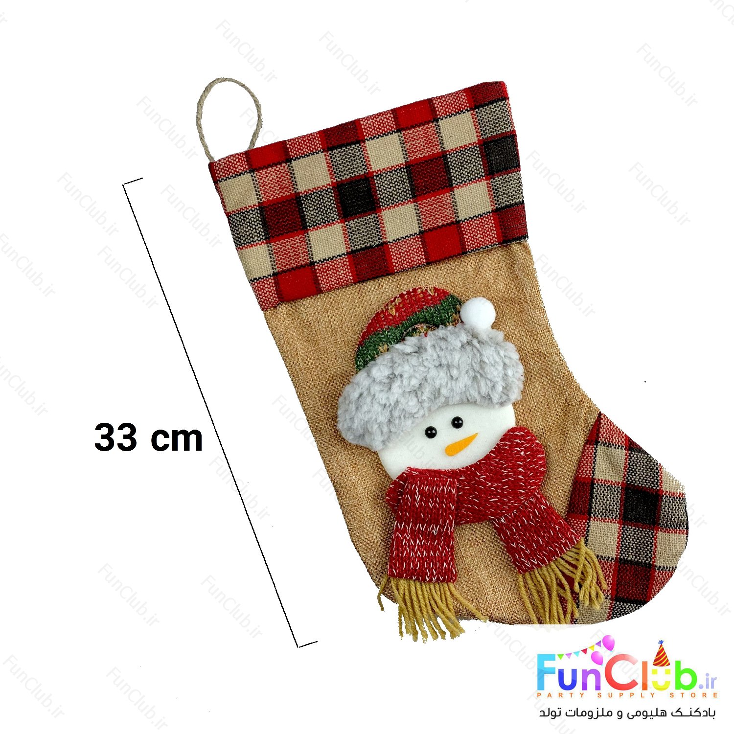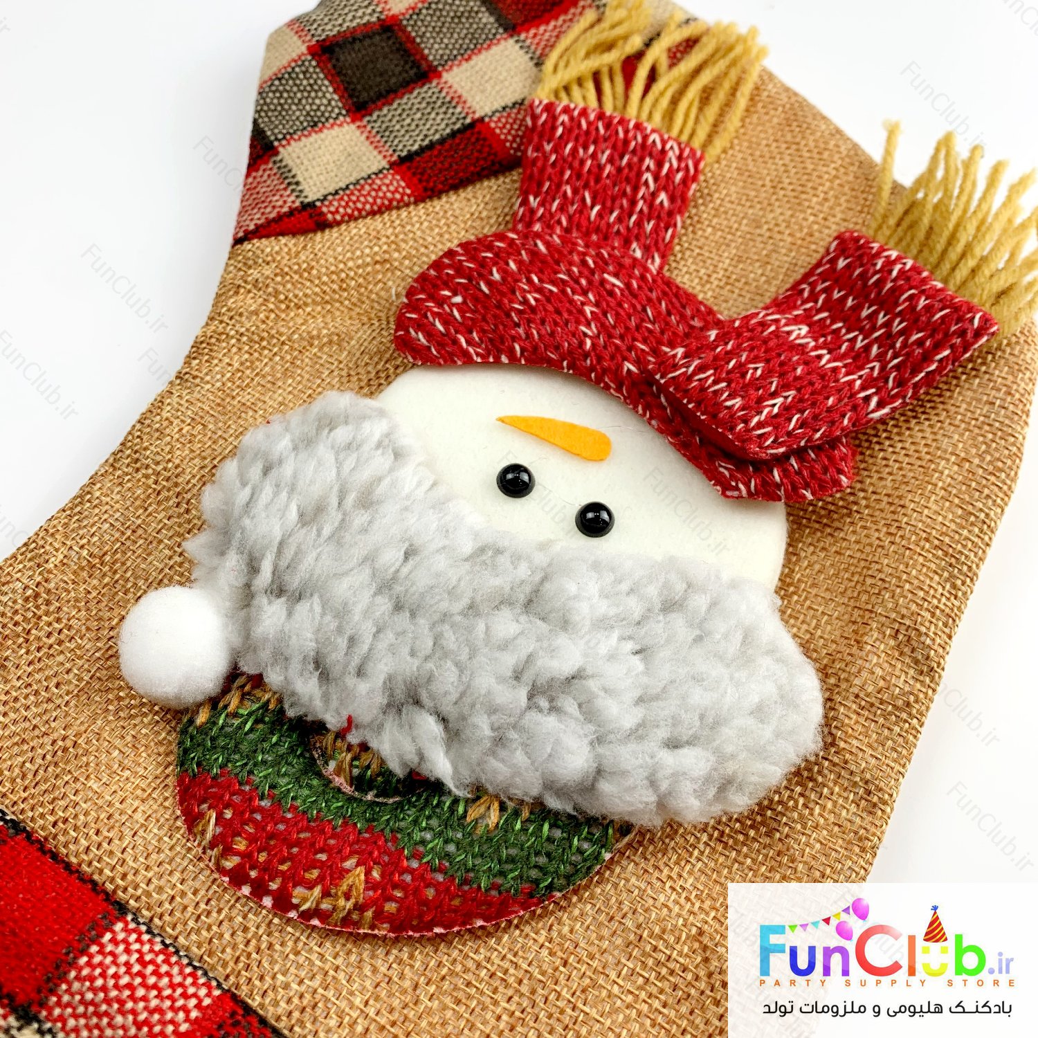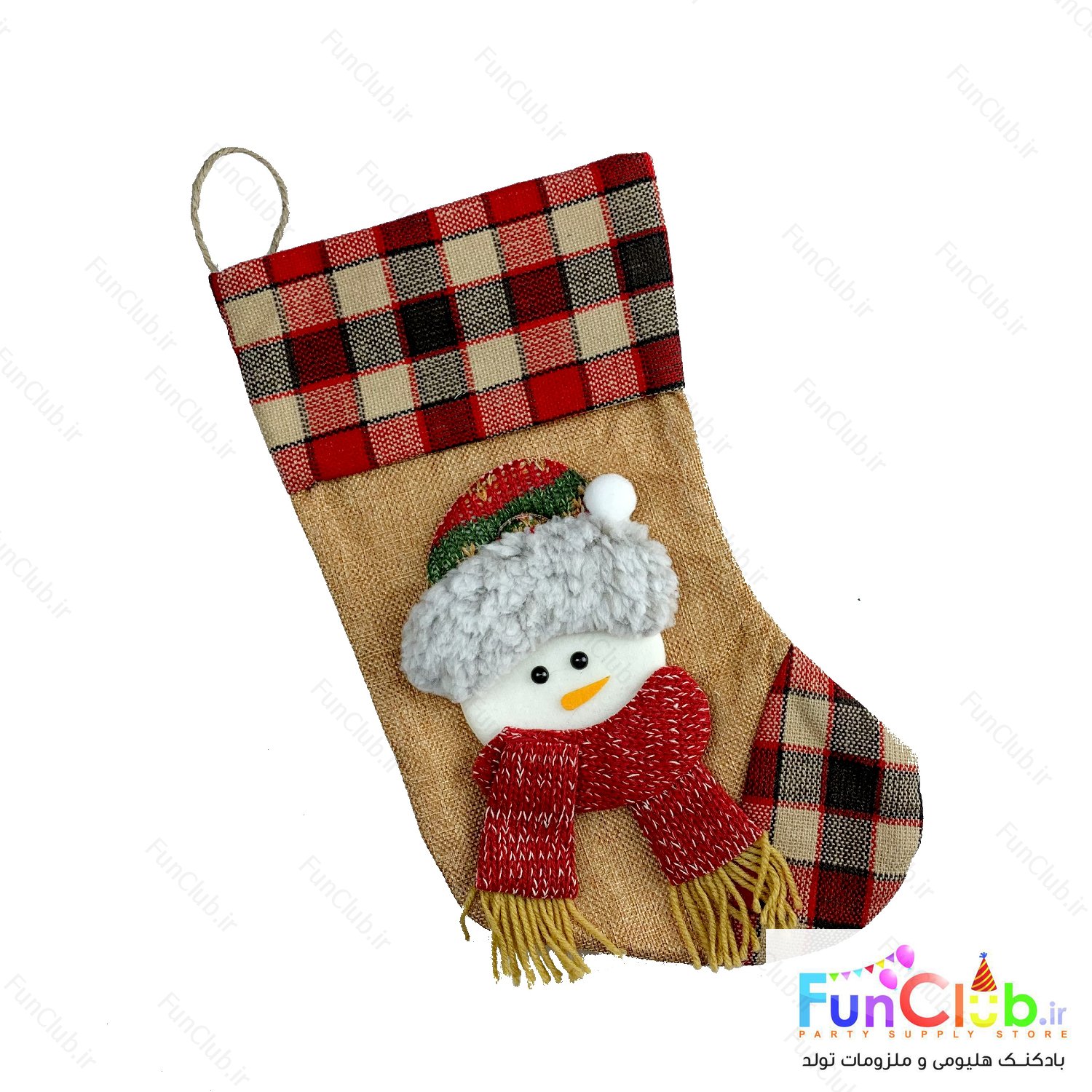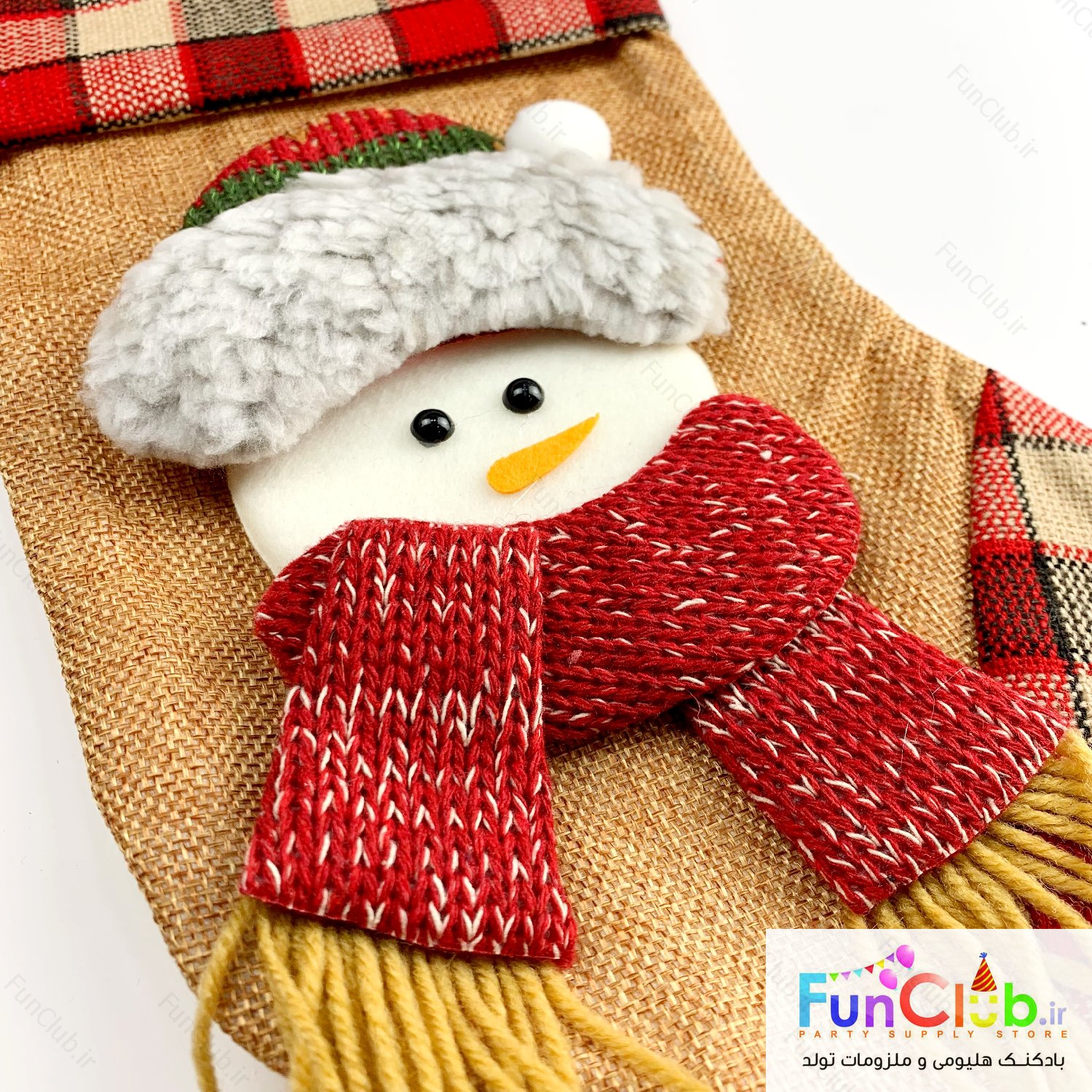 تزیینات کریسمس - جوراب متوسط آدم برفی شالگردنی پارچه ای