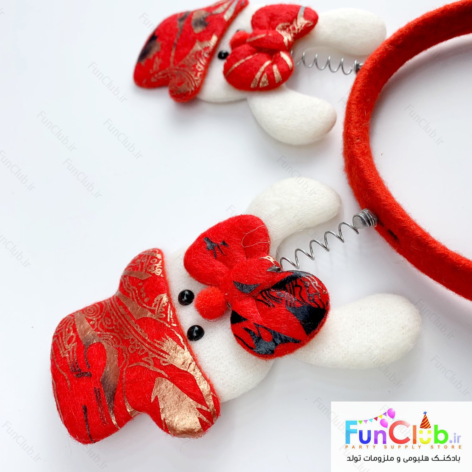 پوشیدنی کریسمس - تل آدم برفی سفید و قرمز فنری - فری سایز مناسب 2 سال به بالا