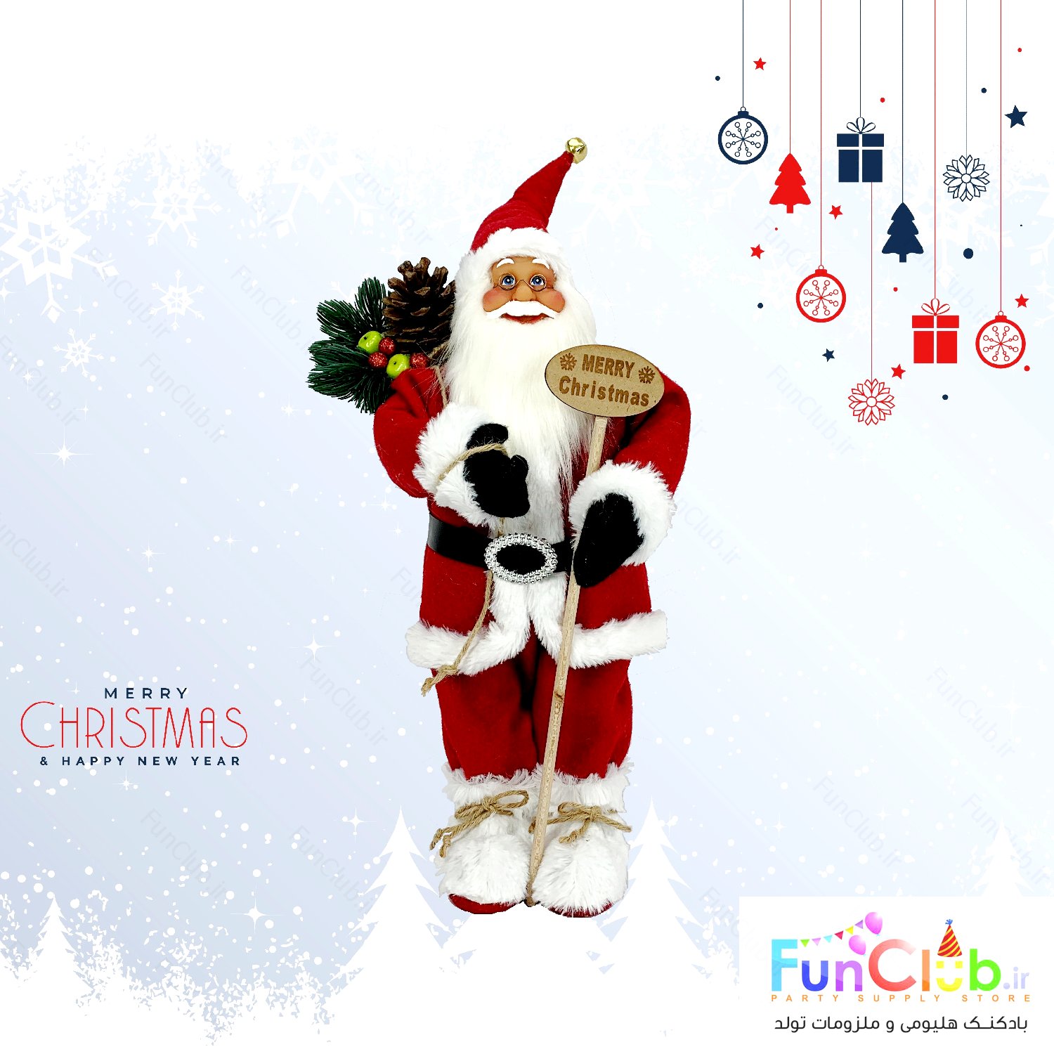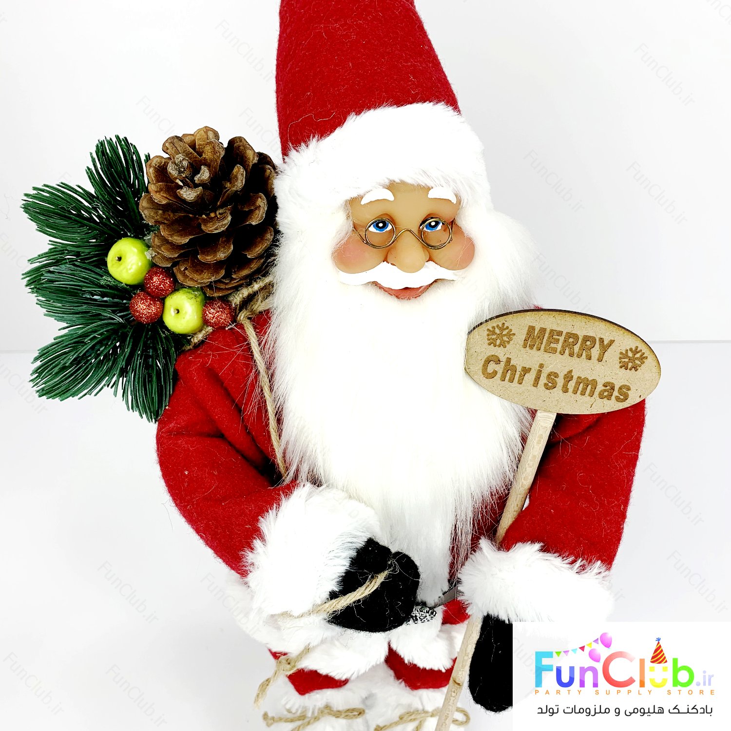 تزیین کریسمس - استند بابانوئل ارتفاع 45 سانت مدل 2 لباس قرمز و سفید + تابلو مری کریسمس با قابلیت شکل دادن به دست ها و کلاه