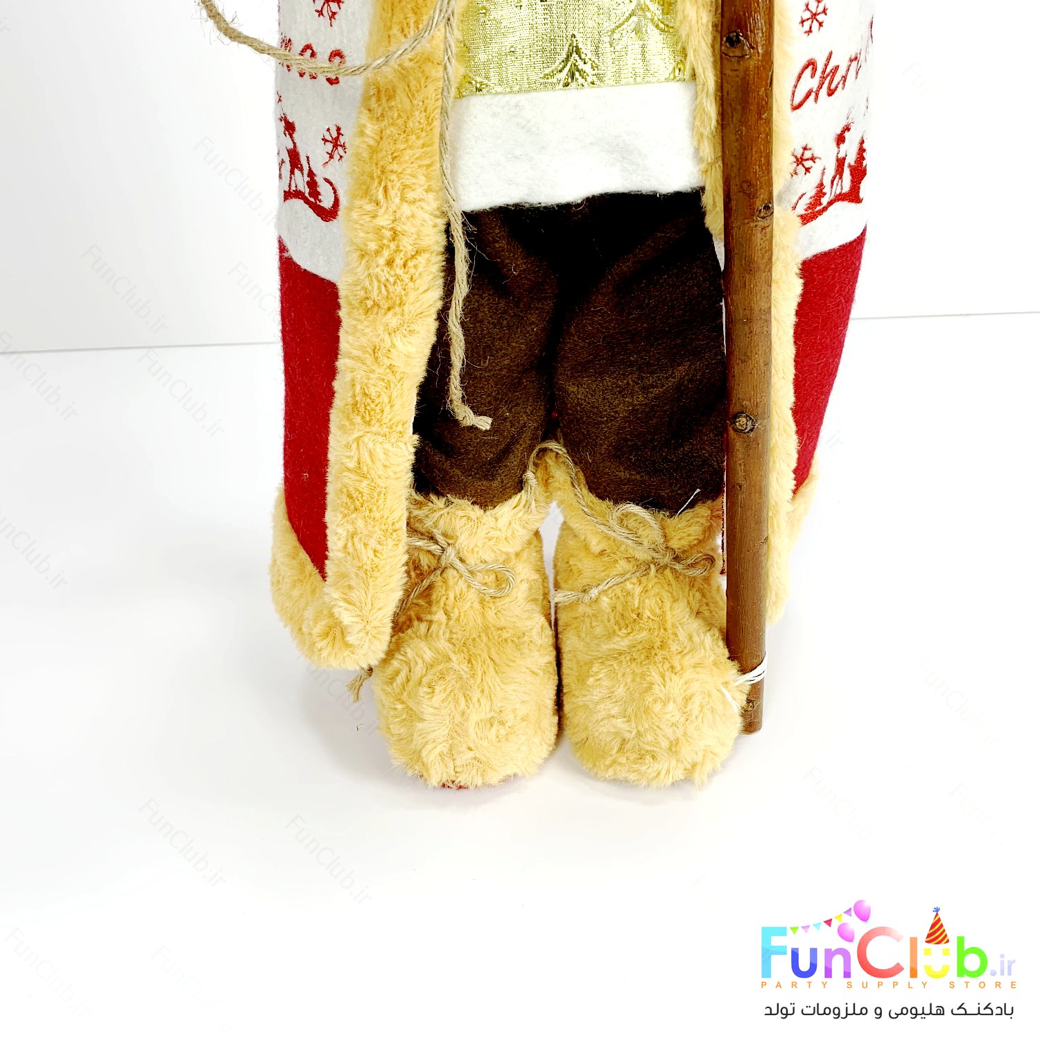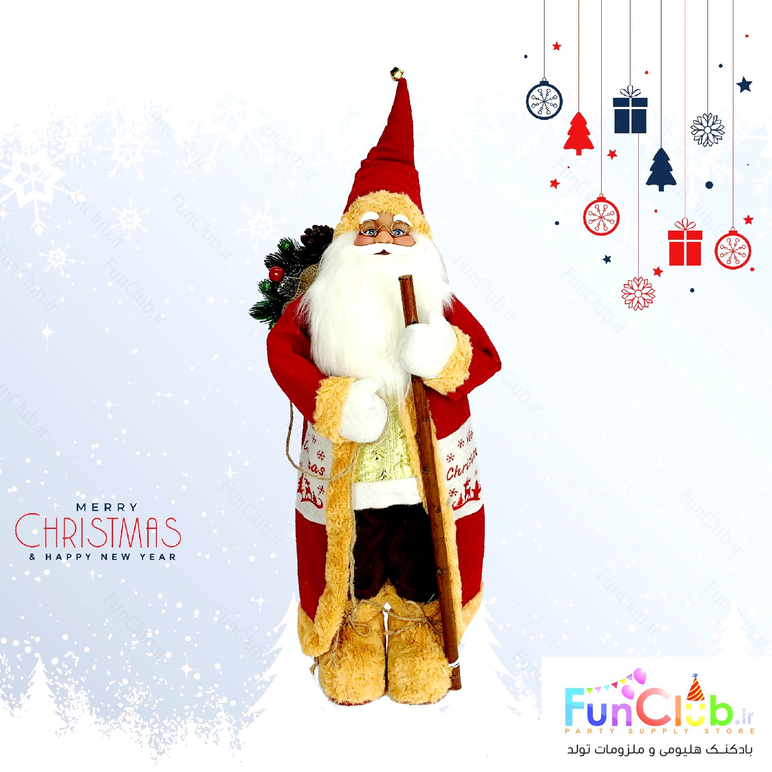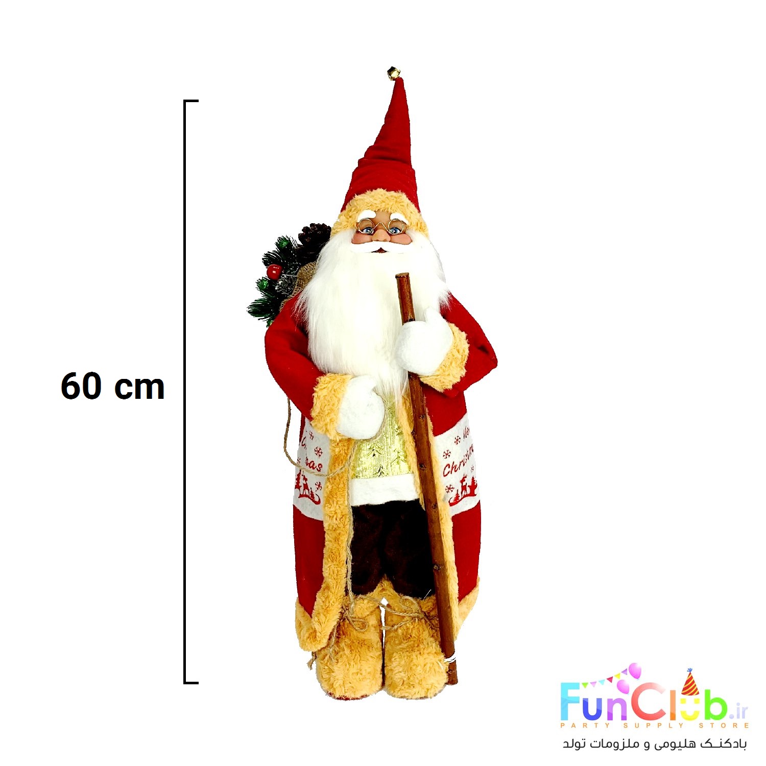 تزیین کریسمس - استند بابانوئل ارتفاع 60 سانت مدل 1 لباس قرمز نوشته دار + چوب دستی با قابلیت شکل دادن به دست ها و کلاه