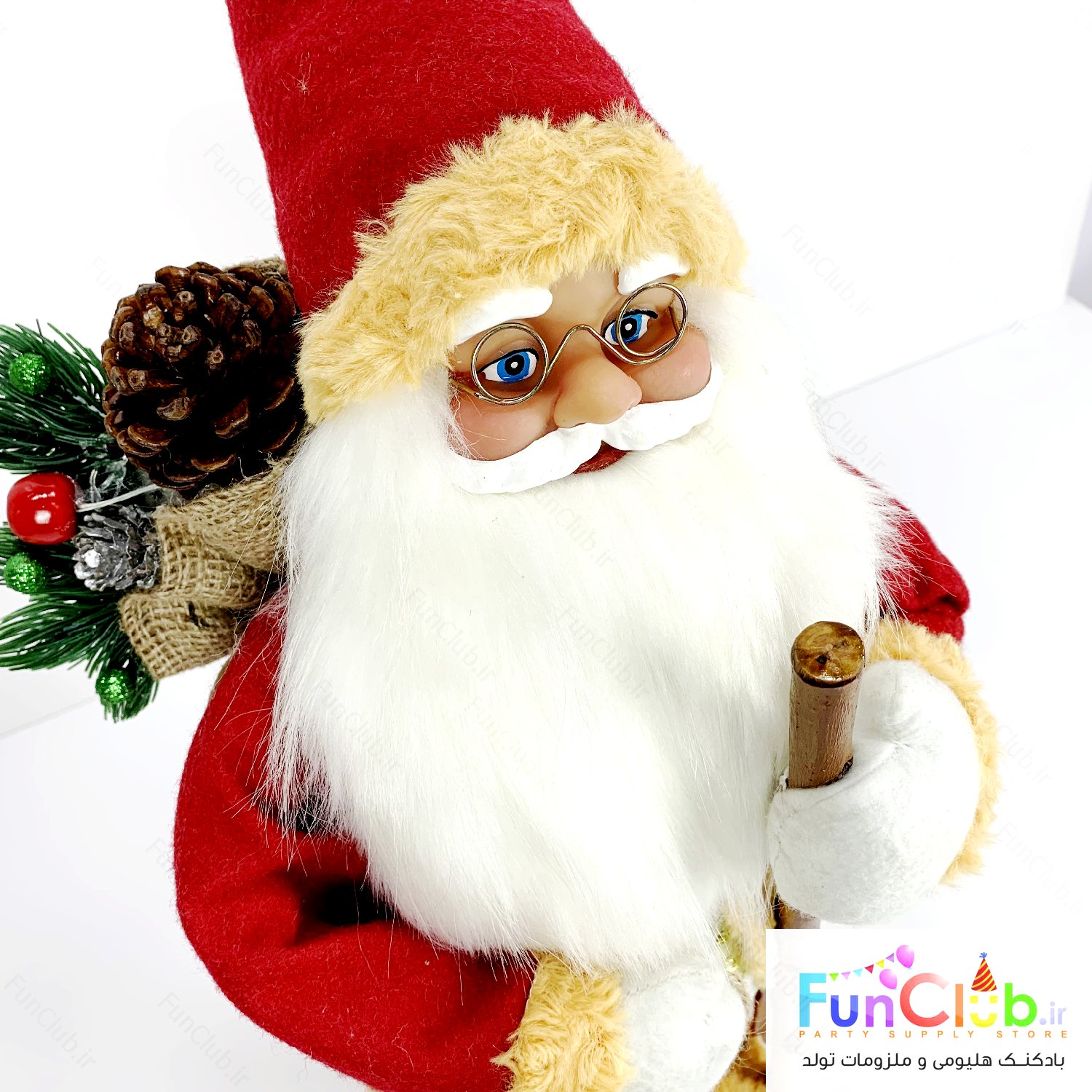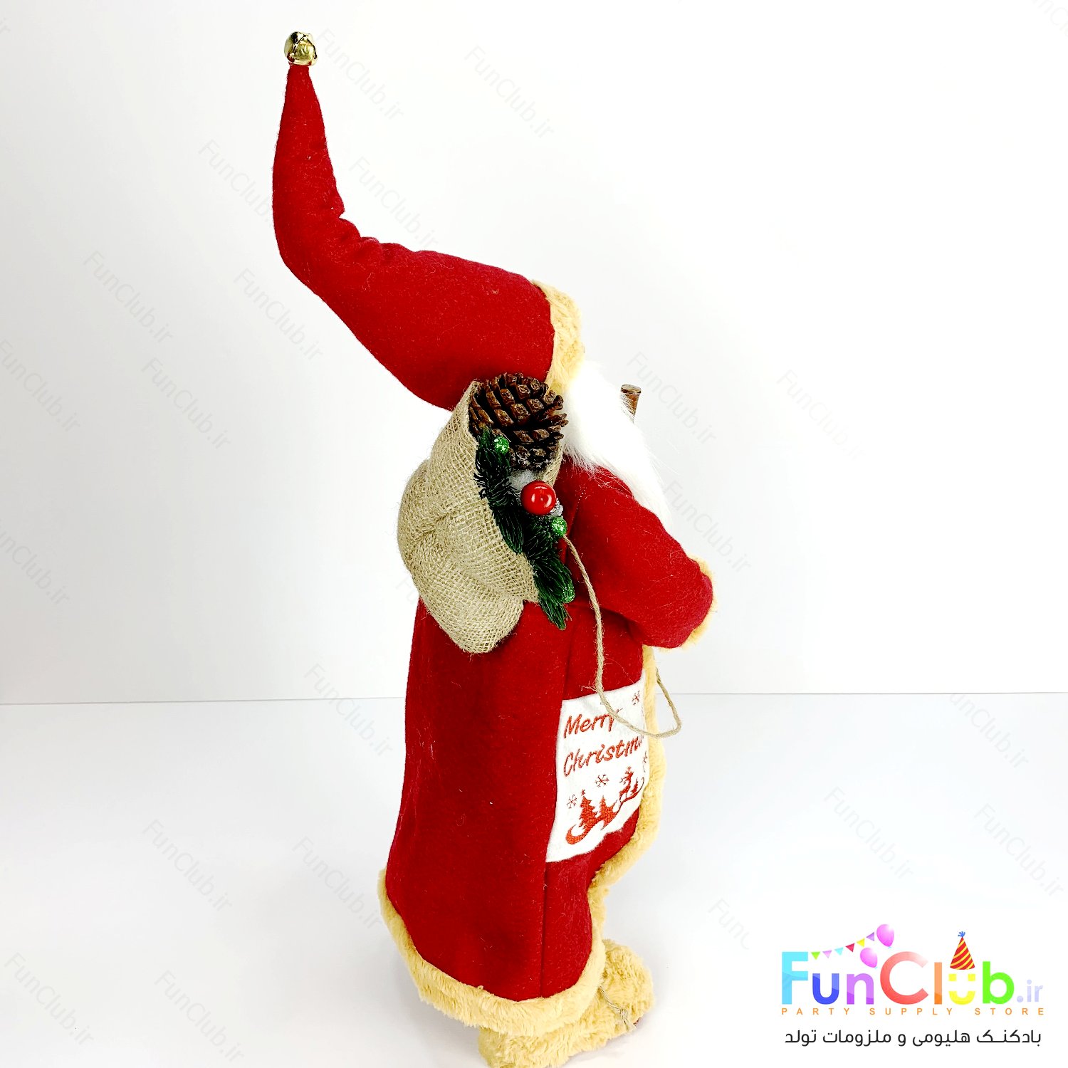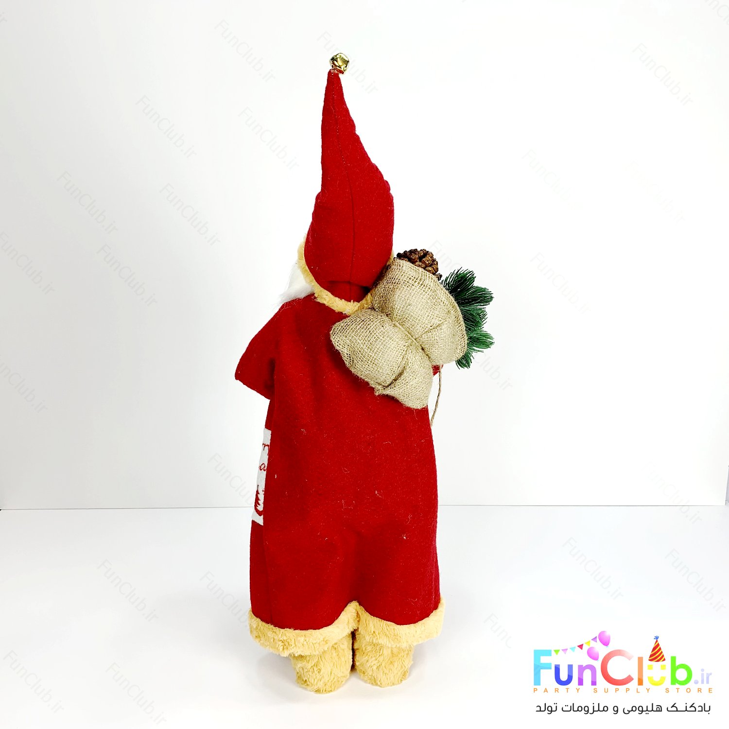 تزیین کریسمس - استند بابانوئل ارتفاع 60 سانت مدل 1 لباس قرمز نوشته دار + چوب دستی با قابلیت شکل دادن به دست ها و کلاه