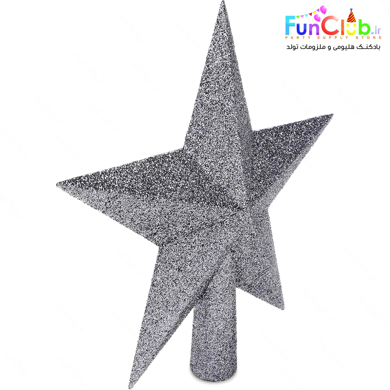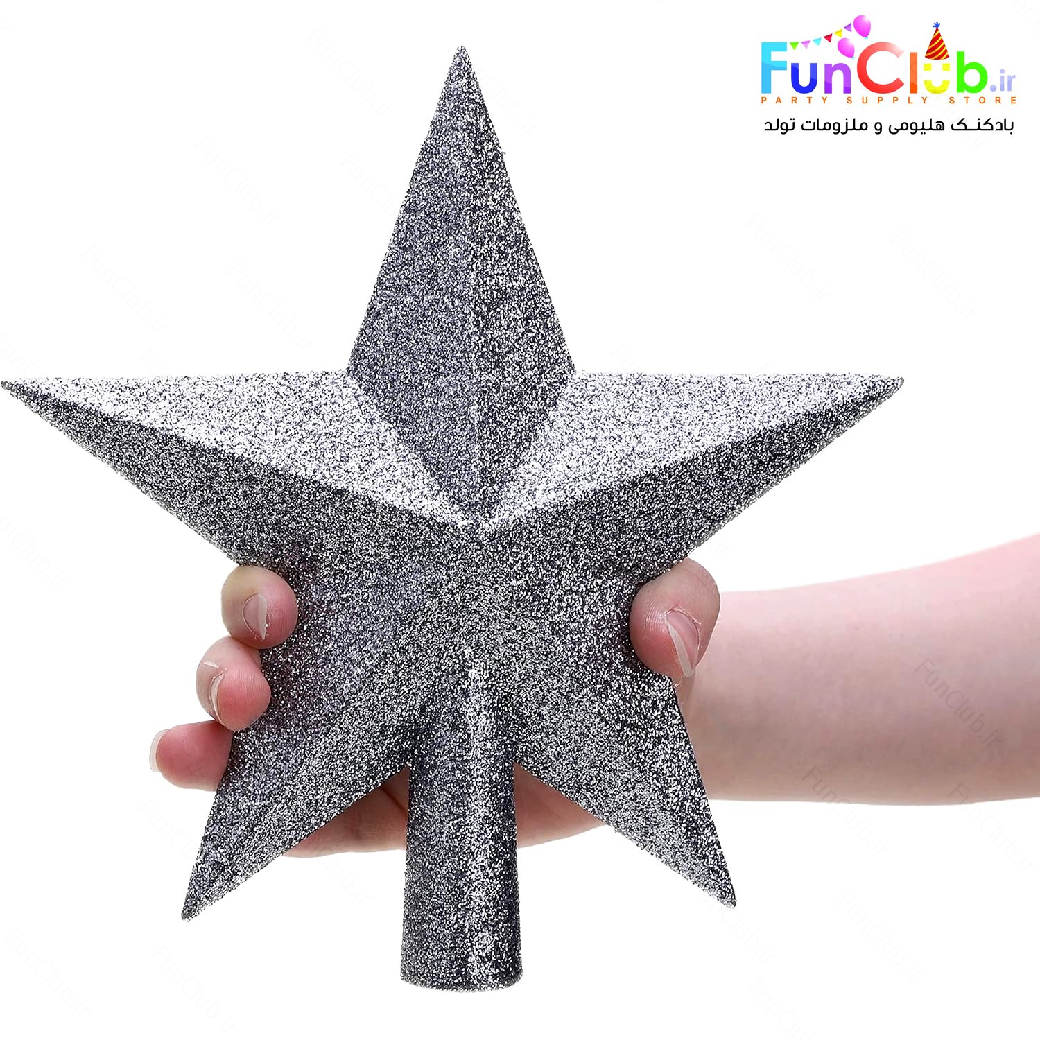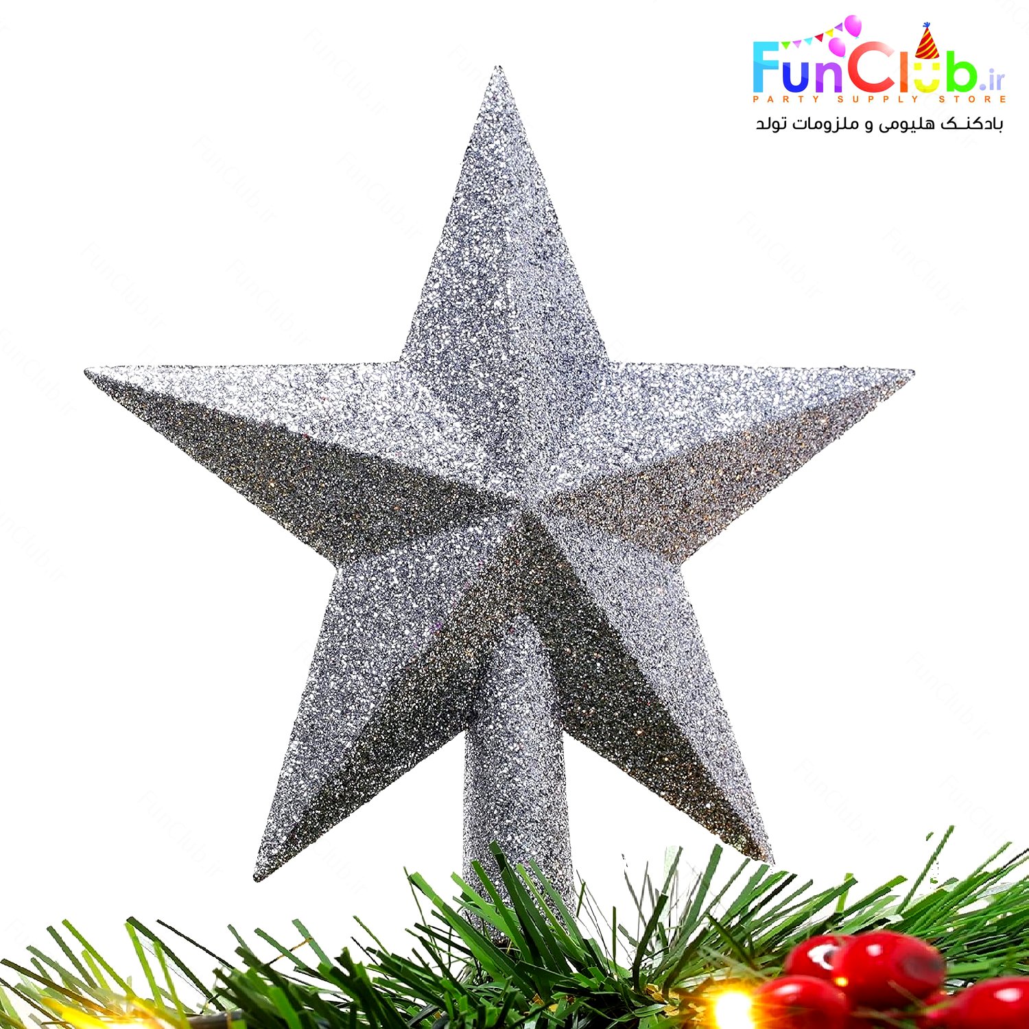 تزیین کریسمس ستاره سردرختی نقره ای اکلیلی - 25 سانتی و 15 سانتی