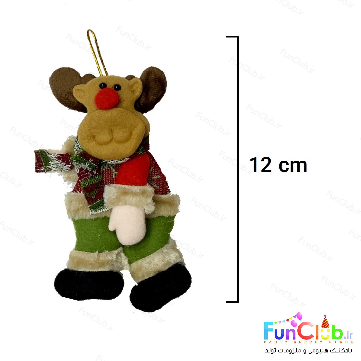 آویز کریسمس کوچک طرح گوزن پارچه ای - 12 سانتی