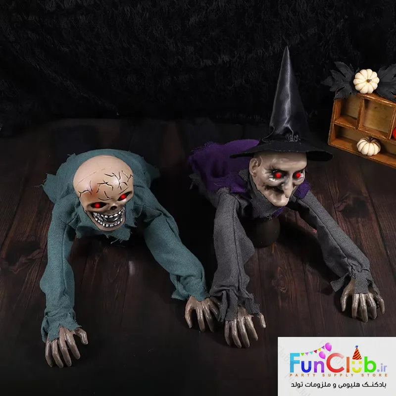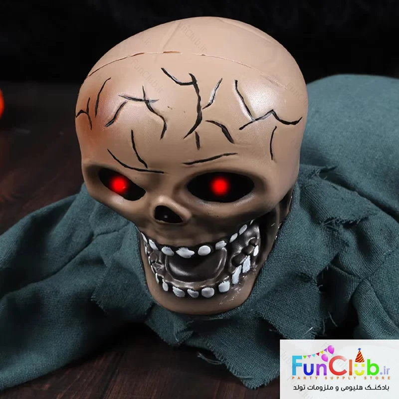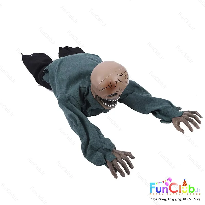 عروسک هالووین بچه زامبی خوابیده متحرک - شیوه عملکرد: عروسک زامبی با فعال شدن حرکتی که بین چشمانش قرار گرفته، دستهای عروسک به سمت جلو به حرکت درخواهد آمد و تولید صدای خوفناک میکند. فاقد باطری و نیازمند 4 عدد باطری قلمی - امکان استفاده روی زمین یا به صورت آویز در بالای درب ورودی، لوستر و ....