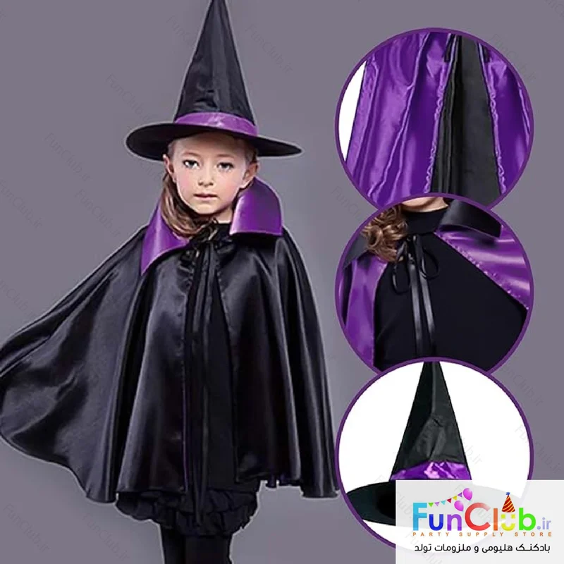 ست کلاه و شنل کودک مشکی-بنفش - فری سایز