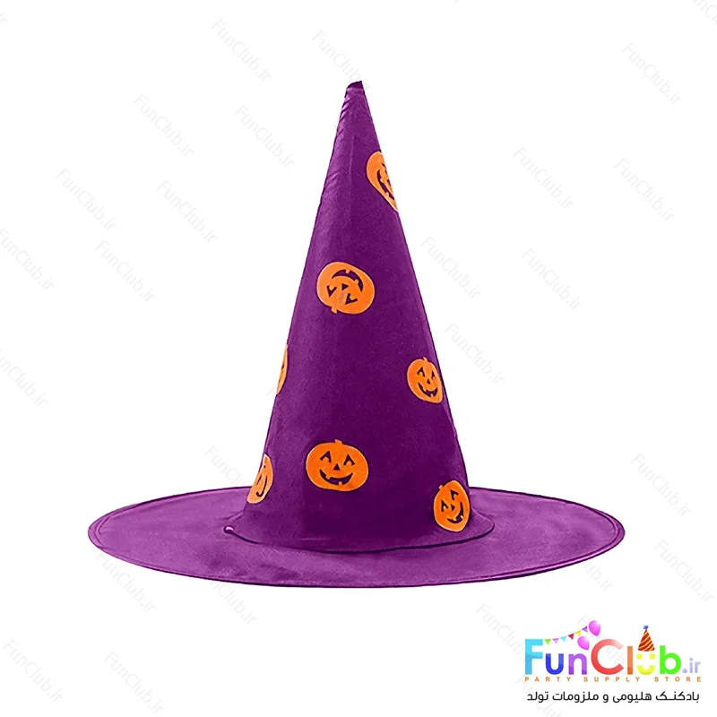 کلیه لوازم و پوشیدنی ها تحت هیچ عنوان تعویض یا مرجوعی ندارند - مناسب 7 سال به بالا - کلاه هالووین مدل جادوگر بنفش طرح کدو درجه 1 - مناسب دور سر 52 تا 55 سانتیمتر