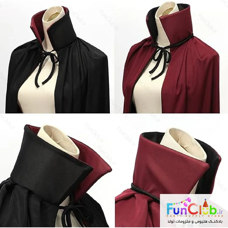 بلندی 140 سانتیمتر - شنل دورو هالووین مدل خون آشام 140 سانت (زرشکی-مشکی)