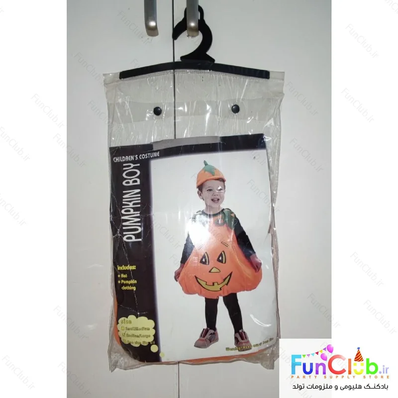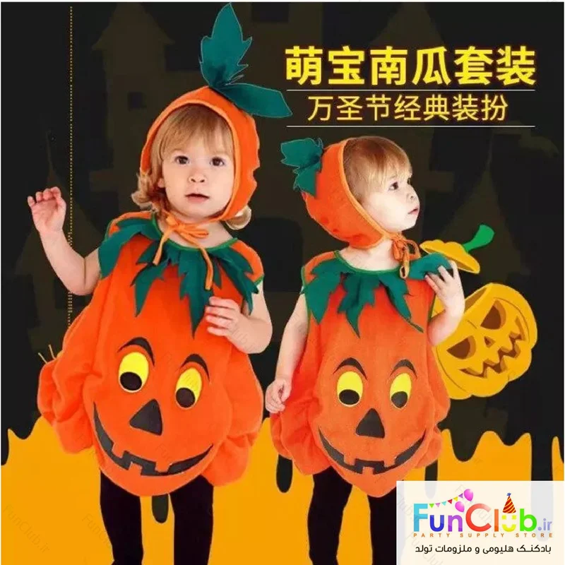 ست تنپوش و کلاه کودک پارچه ای طرح کدو هالووین مناسب 5 تا 10 سال فری سایز