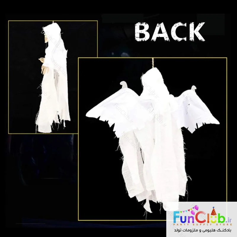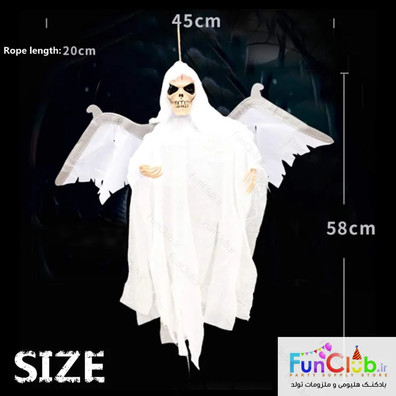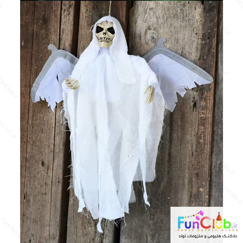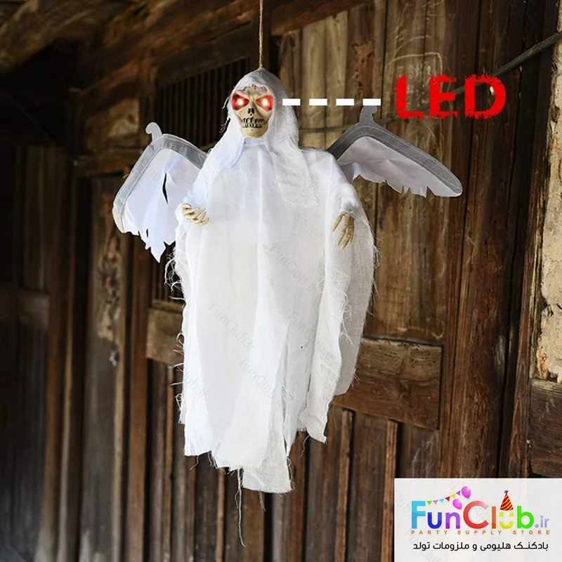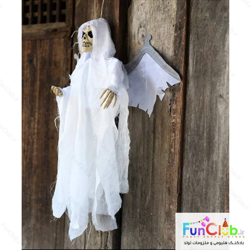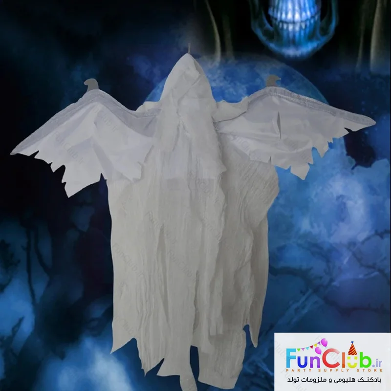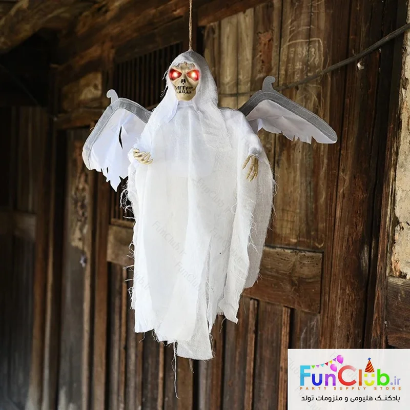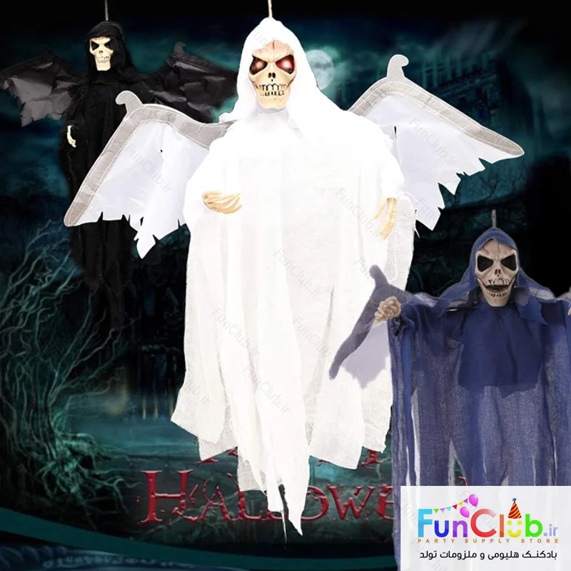 عروسک هالووین اسکلت بال دار - شیوه عملکرد: بال های عروسک اسکلت با فعال شدن سنسور به وسیله صدا، به حرکت درخواهد آمد و تولید صدای خوفناک میکند. فاقد باطری و نیازمند 3 عدد باطری قلمی