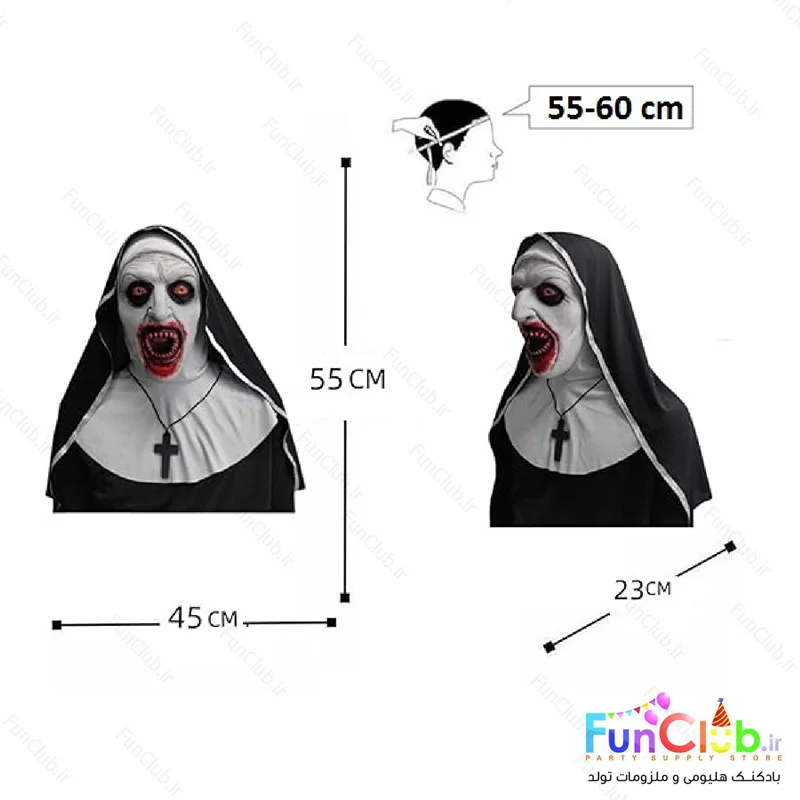 کلیه لوازم و پوشیدنی ها تحت هیچ عنوان تعویض یا مرجوعی ندارند . مناسب 10 سال به بالا - ماسک لاتکسی پوشیدنی مدل راهبه کاوردار (The Nun (Valak