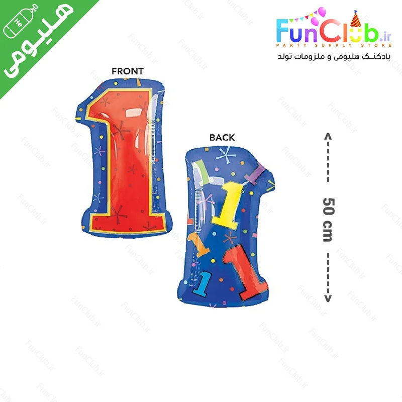 بادکنک هلیومی فویلی سایز متوسط طرح عدد یک (دو طرفه)