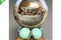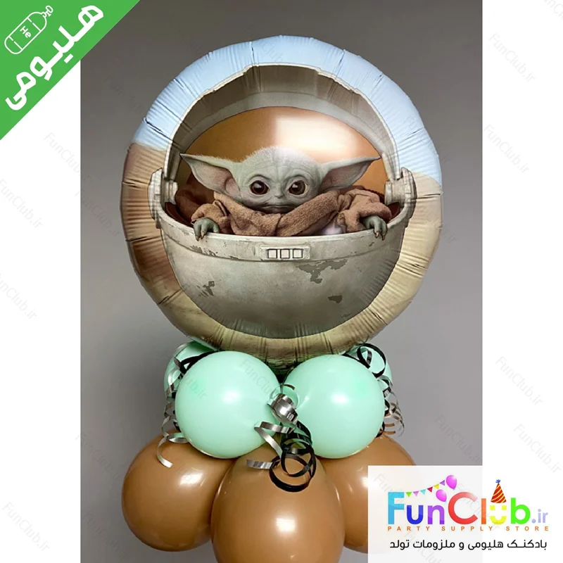 بادکنک هلیومی فویلی سایز استاندارد طرح دایره سفید قهوه ای بیبی یودا