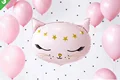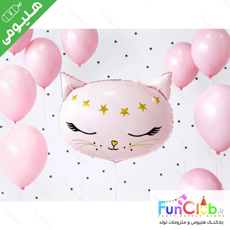 بادکنک هلیومی فویلی سایز متوسط طرح گربه صورتی ستاره دار