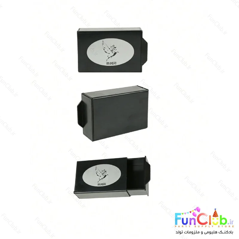 شعبده ای که همه دوست دارند به راز آن پی ببرند. با این جعبه جادویی می توانید هر وسیله ای را که هر چند بزرگ باشد غیب کرده و مجددا با خواندن یک ورد جادویی ظاهر کنید و سبب حیرت و شگفتی تماشاچیان شوید. وردی که فقط شما قادر به ظاهر کردن آن هستید. حتی شما می توانید برای هیجان بیشتر نمایش از تماشاچیان درخواست پول و یا اشیاء گران قیمت نظیر طلا، جواهر و … نمایید و آنرا درون این جعبه جادویی قرار دهید. حالا با باز کردن مجدد درب جعبه، ناگهان تمامی اشیاء درون آن ناپدید شده و می توانید ترس از دست دادن اشیاء قیمتی را در چشمان تماشاچی خود مشاهده کنید . خصوصا اگر به او بگویید که دیگر پول و یا طلای شما قابل برگشت نمی باشد.با این جعبه غیب کن سیاه می توانید نمایش های زیبا و شگفت انگیزی را به ابتکار خود انجام دهید !!!