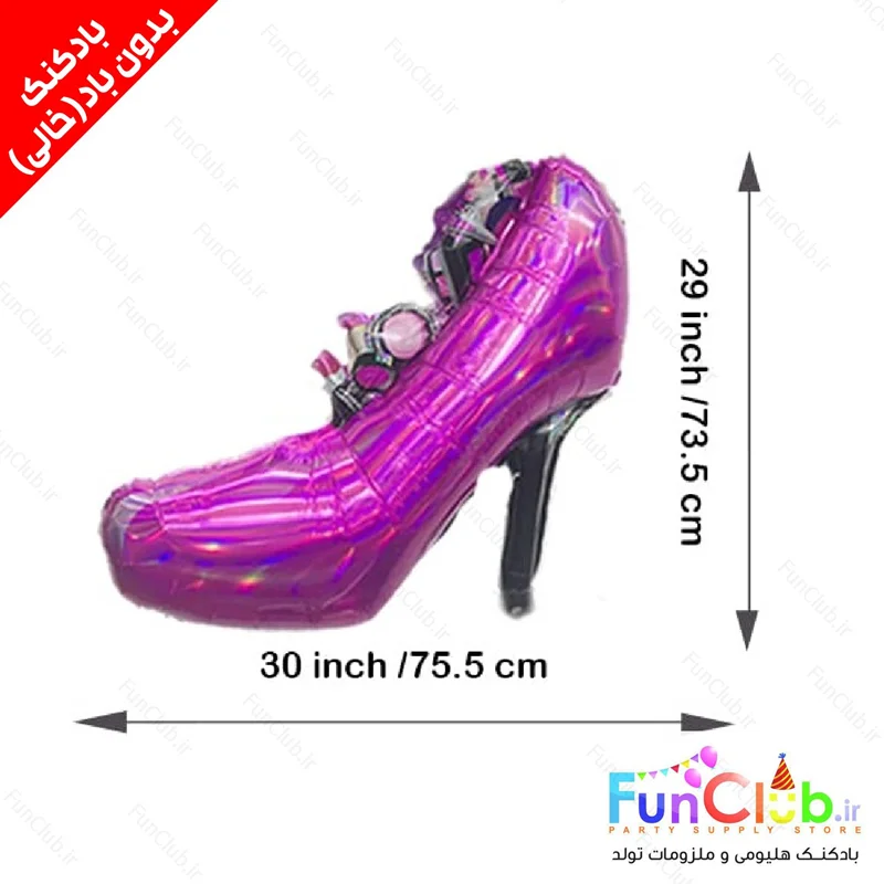 بادکنک فویلی بدون باد سایز بزرگ طرح کفش باربی (barbie) - این محصول ویژه پر شدن با هوا یا هلیوم در منزل توسط خریدار محترم میباشد.
