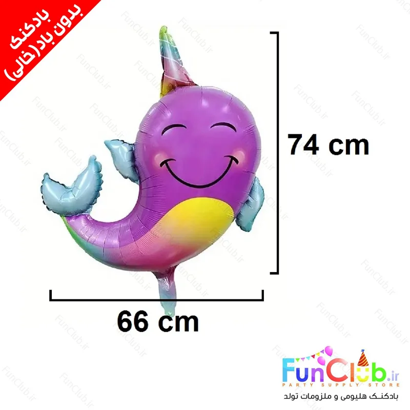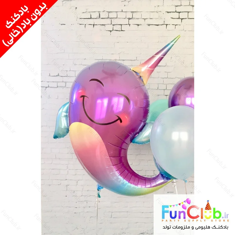 بادکنک فویلی بدون باد سایز بزرگ طرح نهنگ تک شاخ - این محصول ویژه پر شدن با هوا و یا هلیوم در منزل توسط خریدار محترم میباشد.