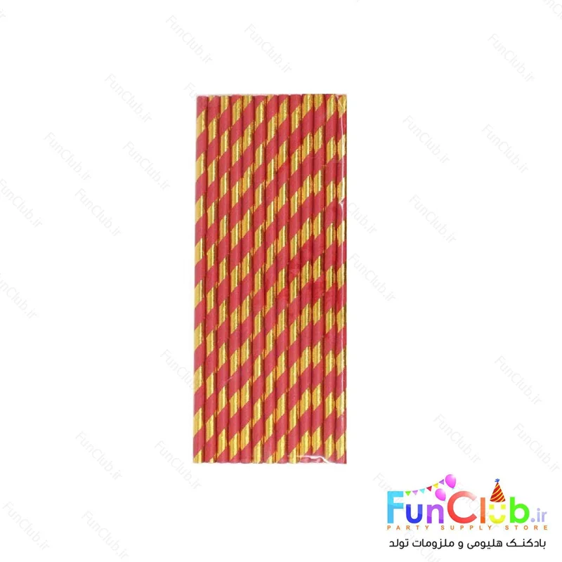 نی کاغذی طرح هاشور قرمز-طلایی متالیک (بسته 24 عددی)
