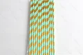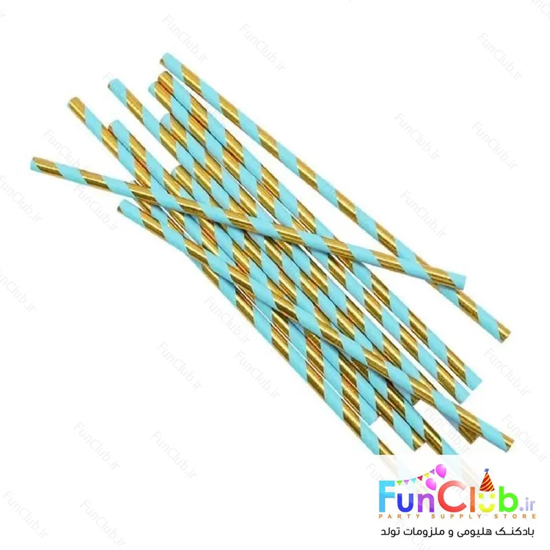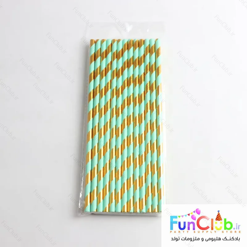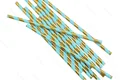 نی کاغذی طرح هاشور طلایی-آبی فیروزه ای متالیک (بسته 24 عددی)